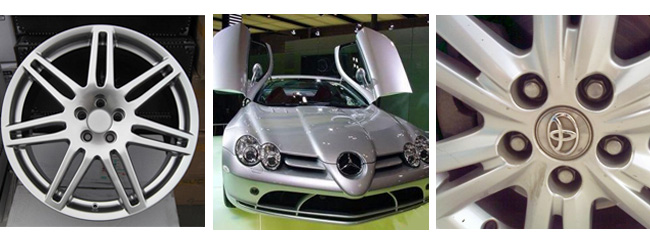 鋁銀漿主要應(yīng)用的塑膠漆在汽車工業(yè)十分常見,目前主要集中在外飾件和內(nèi)飾件。外飾件的涂裝,除了色相要與車身同色且有光澤外,還要提高表面硬度,增強(qiáng)塑料表面抗劃傷性能,更要能適應(yīng)紫外光暴曬等戶外性能。而內(nèi)飾件的涂裝則對(duì)漆膜耐候性要求不高,主要是對(duì)營(yíng)造表面金屬質(zhì)感,提高內(nèi)飾件的耐刮擦、防靜電等性能有要求。